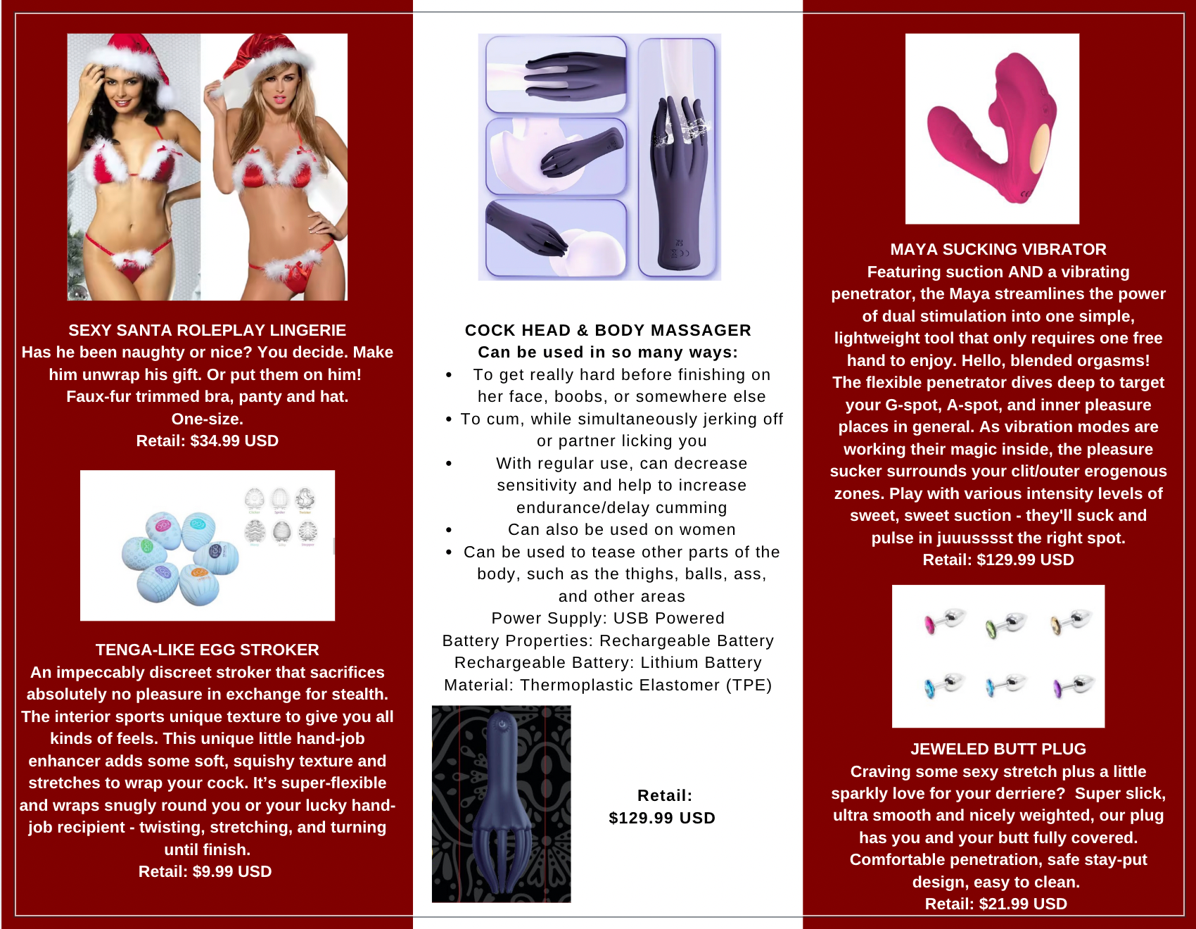 5) SEXY SANTA ROLEPLAY LINGERIE (may be substituted if supplies run out)